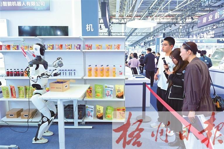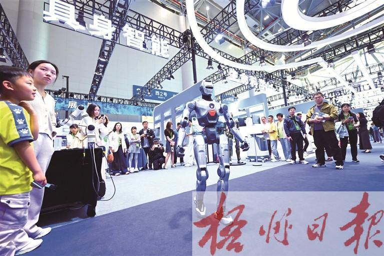 4月26日,观众在第四届科交会上观看一款人形机器人。新华社记者 周牧 摄