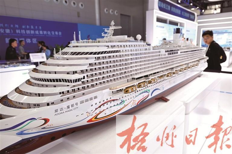 4月26日,观众在第四届科交会上观看“爱达·魔都号”邮轮模型。新华社记者 黄博涵 摄