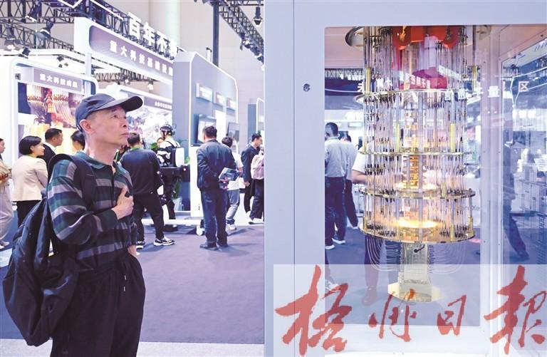 4月26日,观众在第四届科交会上观看一款超导量子计算机模型。 新华社记者 周牧 摄